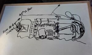 Skyggerelieff av Albert Janus. Ser tydelig hvordan vraket har sklidd ned i dypet