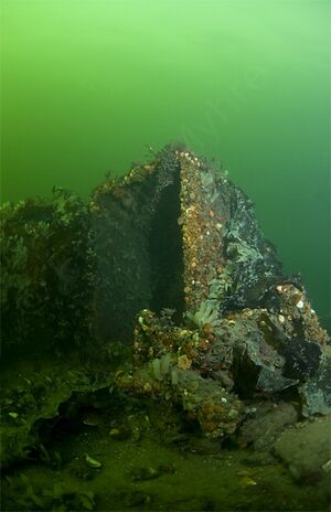 Akterenden hviler på 15 meters dybde © Fredrik Myhre