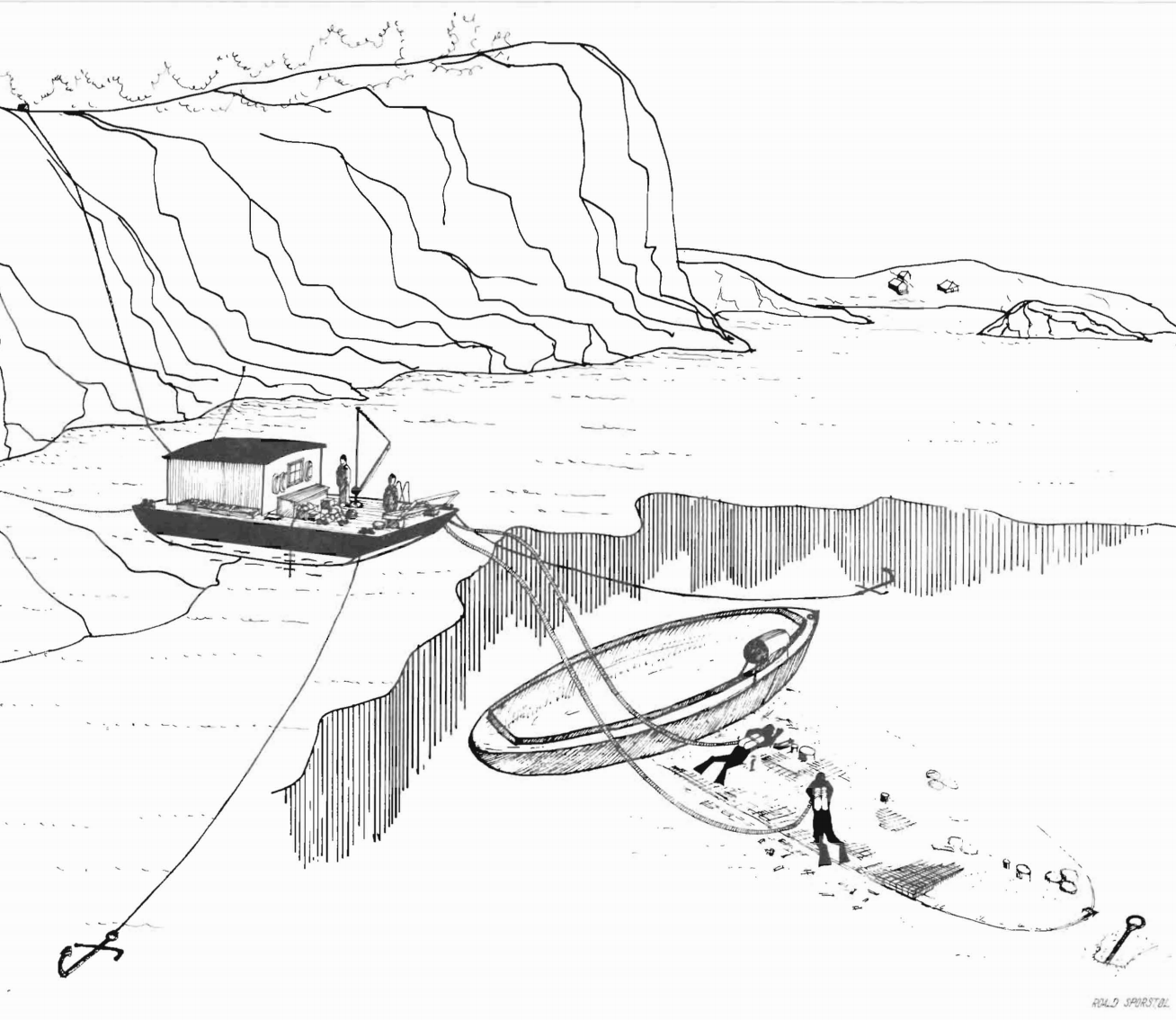 Tegning fra NTNUs rapport fra 1975 som hviser hvordan stållekteren lå oppå Perlen