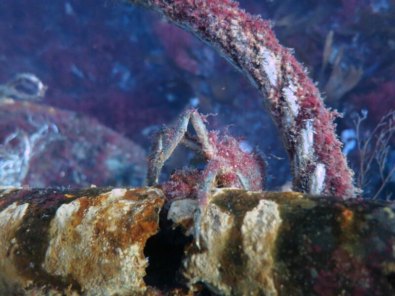 Krabbe på rekkverk på MV Server. Dybde ca. 12m?