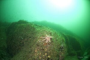 Tareskog på grunnere dyp. Deretter div rødalger og fastsittende dyr som svamper og bryozoer. Hyller hvor bunnfisker kan ligge, og sprekker for leppefisker og kvabber. Typisk sted for fiskestimer pga strømmen. Fra 60-65 meters dyp vokser det blomkålkorall.