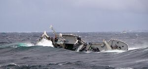 Ringnotsnurperen "Herøy" ble bygget ved Simek AS i Flekkefjord i 1995, og har tidligere vært registrert i Storbritania. Da forliset skjedde var "Herøy" på sin første tur med sin nye eier Herøyfisk AS på Eggesbønes, Sunnmøre. "Herøy" grunnstøtte på "Bjugna" på Hustadvika i 5-tiden på morgenen. Båten fikk raskt slagside, og kapteinen beordret alle mann over bord. Disse ble plukket opp av fiskebåten "Fonnes" som var i nærheten. Redningsskøyten «Det Norske Veritas» kom også utover, men måtte gi opp å feste sleper i vraket da det blåste stiv kuling, og sjøen var grov. Det ble også rekvirert et Sea King redningshelikopter. Ved 09.30-tiden hadde havaristen en slagside på 40 grader mot styrbord. I 10-tiden forsvant nota, og sjøen vasket inn i styrehuset. Det ble også sendt ut en taubåt fra Kristiansund for å holde vraket under oppsikt, og KV Eigun kom også til. Det var 170 tonn diesel ombord under grunnstøtingen, og det var frykt for at denne ville gjøre skade på oppdrettsanlegg i området, så et overvåkningsfly ble satt inn for å undersøke utviklingen. 7. februar sank havaristen tett inntil Bjugna. Vraket ligger nå temmelig malt i stykker men har også større skrogdeler.