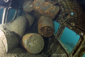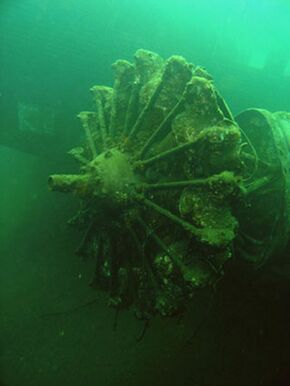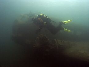 Ta på deg utstyret og hopp ut i elven fra der du stoppet. La deg drive med elven ned til vannet. Når du kommer til vannet, hold til høyre over sandbanken til det brått blir dypere. Der burde du gå nesten rett på flyvraket. Maksdybde nede foran vraket er bare 8 meter. Etter dykket, gå over sandbanken og utløpet av elven og i land. Følg så traktorveien tilbake til bilen.