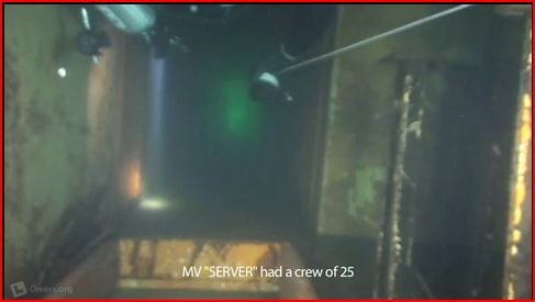The weather in the area was stormy and the captain was unable to keep MV "Server" on a westerly course out from Fedje. The ships speed fell, at times it´s propeller was out the water and the captain lost control ultimately ending with the grounding. MV "Server" subsequently broke in two and oil escaped the vessel causing massive pollution damage in the are. It is rare that we are able to dive such a "fresh" wreck, and it is impressively intact providing numerous swim-throughs and easy access for penetration.